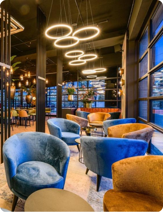 Of het nu gaat om een levendige werkplek, gastvrije hospitalityruimte of inspirerende leeromgeving, wij richten ruimtes in die mensen verbinden en energie geven.