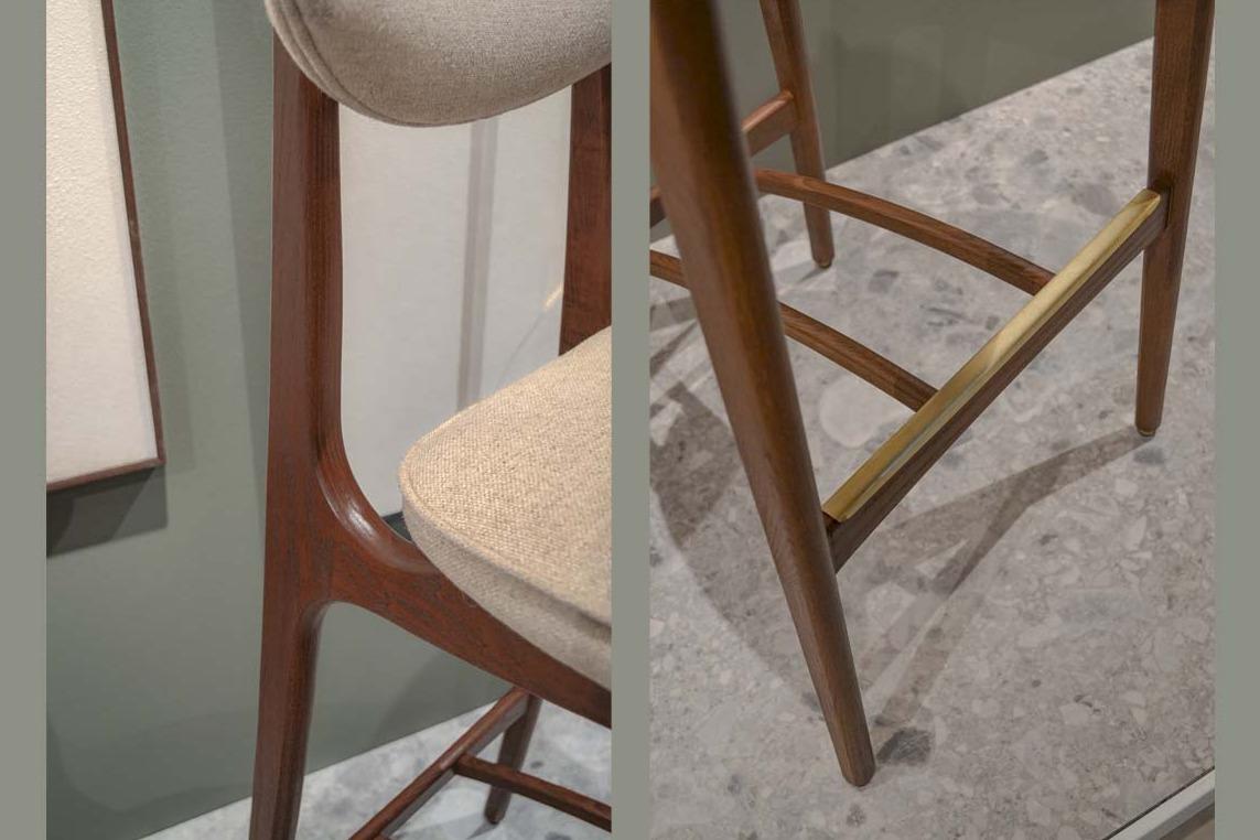 De serie bestaat uit een stoel, fauteuil en kruk, alle gekenmerkt door een retro uitstraling uit de jaren ’60. Veel zachte en organische vormen geven de stoelen een lichte en elegante uitstraling.