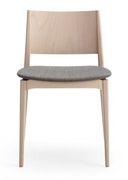 In de Blazer collectie wordt esthetiek bepaald door de constructieve kenmerken. In de stoelen en krukken geven de licht ingesprongen voorste tresso, de verhoogde zitting en toelopende poten geven een idee van lichtheid en elegantie.