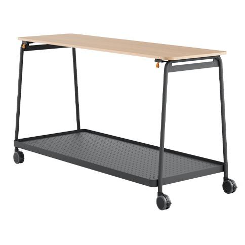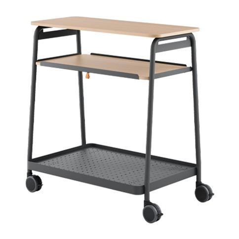 De Boards Trolley heeft een praktisch design met een zwart metalen frame en houten blad. Dankzij de wieltjes eenvoudig te verplaatsen en ideaal als side table, mobiele werkplek of extra opbergruimte.
