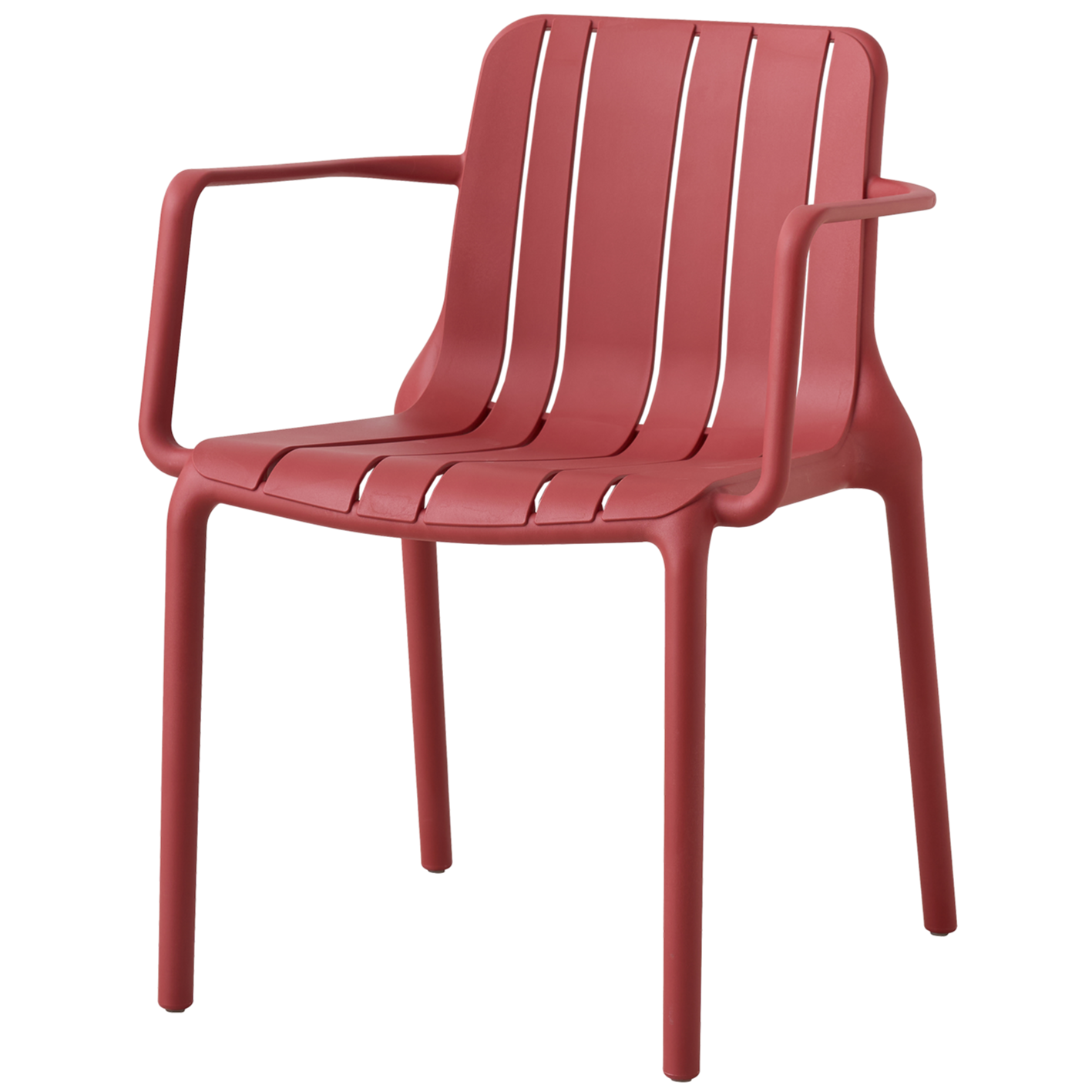 De Drift A rood is een comfortabele en onderhoudsvriendelijke terrasstoel. De licht gebogen zitting en rugleuning zorgen voor een aangename zit, terwijl de armleuningen extra steun bieden.