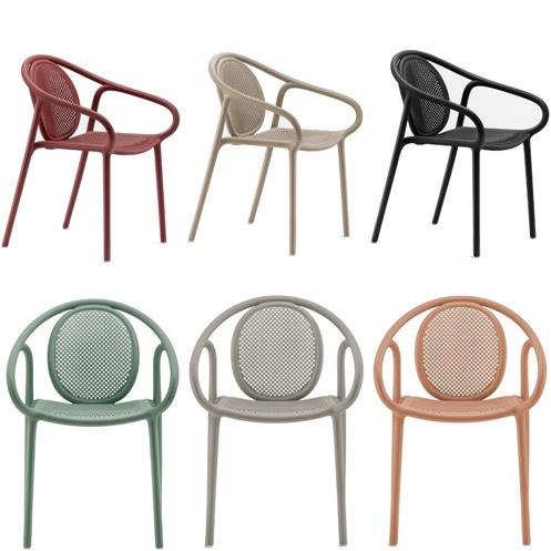 De Remind terrasstoelen laten zich kenmerken door hun geperforeerde rugleuning en zitting. In combinatie met het golvende lijnenspel zorgt dit voor een luchtige uitstraling. Daarnaast zijn de stoelen stapelbaar en erg licht in gewicht waardoor ze makkelijk te verplaatsen zijn. De geperforeerde rugleuning van Remind kan worden versierd met kleine, kleurrijke pixels gemaakt van polypropyleen. Hierdoor kan bijvoorbeeld een patroon, beeldmerk of logo in de stoelen worden verwerkt.