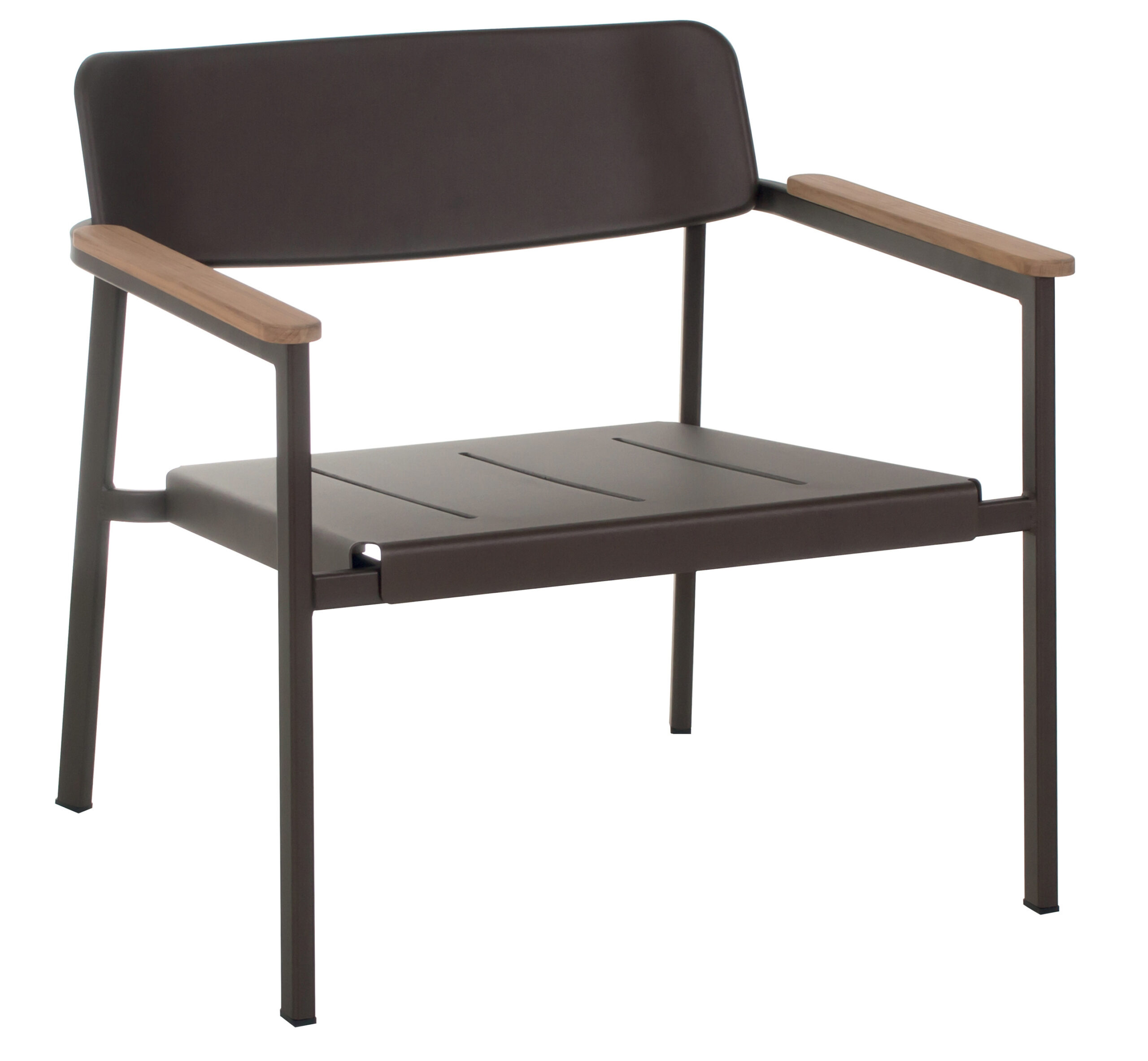 De Shine collectie is gemaakt van gekleurd aluminium waardoor de stoel ontzetten licht en stevig is. De loungestoel beschikt over armleuningen van teak. Ook is hij zeer goed weerbestendig is. De stoelen zijn stapelbaar.