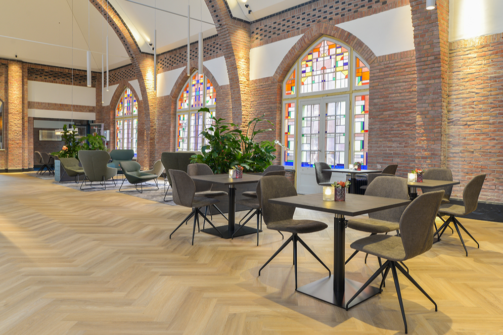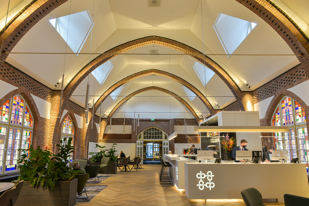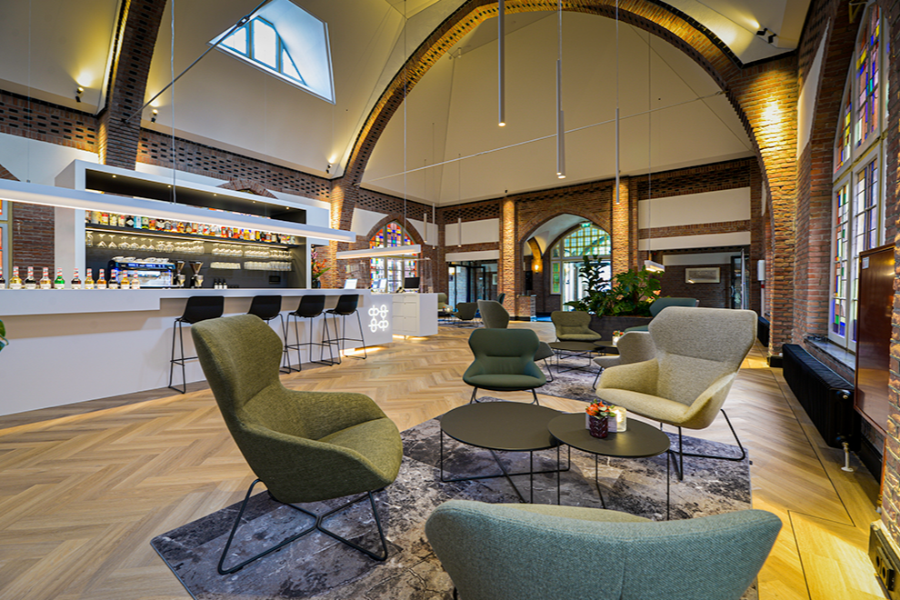 In dit onderwijshotel van de Rooi Pannen bevinden zich meerdere hotelkamers, een restaurant en een lobby waar alle gasten worden ontvangen met een welkomstdrankje.