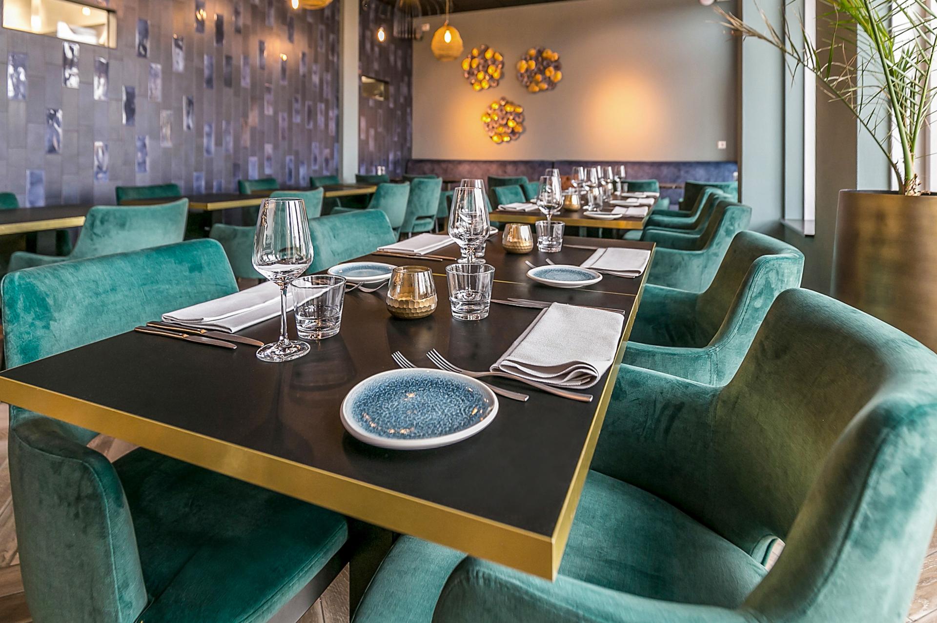 In de horeca draait alles om de totaalbeleving. Denk aan een robuuste eettafel met luxe beklede stoelen, een uitnodigende loungehoek met zachte stoffen en warme verlichting, of een bar die klasse uitstraalt.